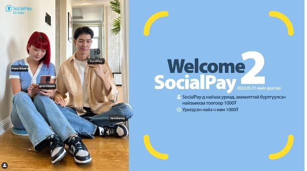Голомт банкны шилдэг дижитал бүтээгдэхүүн SocialPay аппликэйшн 2022.05.31-нийг дуустал “Welcome2SocialPay” урамшуулалт хөтөлбөрийг зарлаж байна. Энэ хугацаанд хэрэглэгч та SocialPay-д бүртгэлгүй найздаа урилга илгээж, урилга хүлээн авсан найз нь амжилттай бүртгүүлэн нэвтэрсэн тохиолдолд та болон таны найзын дансанд тус тус 1,000₮-ийн урамшуулал олгох болно.