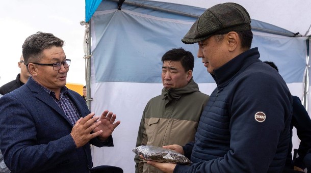 Монгол Улсын Ерөнхийлөгч Ухнаагийн Хүрэлсүх Хэнтий аймагт ажиллах үеэрээ Хэрлэн сумын нутагт хэрэгжих “Хүнсний ногооны үйлдвэрлэл ба усалгаатай газар тариалан” төслийн явцтай танилцлаа.