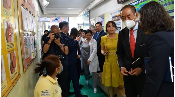 Дэлхийн эрүүл мэндийн байгууллагын Номхон далайн баруун бүсийн захирал Др Такеши Касай болон ажлын хэсгийн бүрэлдэхүүн СХД-ийн “Гурван жаргал хайрхан” өрхийн эрүүл мэндийн төвд /2022.06.17/ өдөр ажиллалаа. Тус өрхийн эрүүл мэндийн төв нь 12мянга 767 хүн амд эмнэлгийн тусламж үйлчилгээ үзүүлдэг. Үүний 0-15 насны хүн ам 33.1%, насанд хүрэгчид 63%, жирэмсэн эмэгтэйчүүд 33%-г эзэлдэг байна. Энэ үеэр МонПэн загвар төсөл, санаачилгын хэрэгжилтийн талаар ЭМЯ-ны НЭМГ-ын дарга Д.Баярболд танилцуулав. Эрүүл мэндийн анхан шатны тусламж үйлчилгээний түвшинд зүрх судасны өвчнөөс сэргийлэх, хянах нэн шаардлагатай тусламж үйлчилгээний багцыг нэвтрүүлсэн туршлага, гаргасан үр дүнгийн талаар онцолсон юм.
