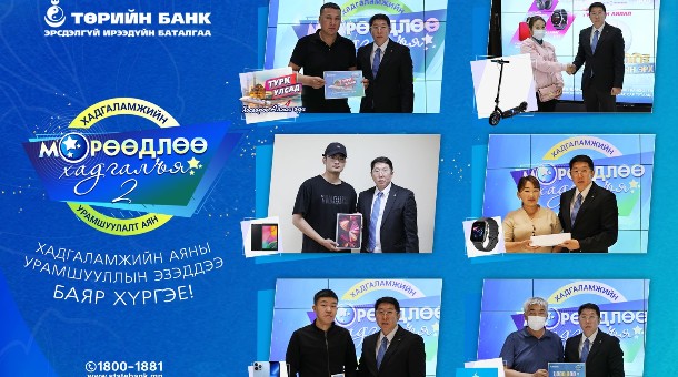Монгол Улсын өнцөг булан бүрд байрлах Төрийн банкны 500 гаруй салбар нэгжид хандаж, 3 сар буюу түүнээс дээш хугацаатай хадгаламж нээлгэсэн, хугацаагаа сунгасан, хадгаламждаа орлого нэмсэн 100,000 төгрөг тутамд нэг эрхтэйгээр сугалааны эрхээ үүсгэсэн нийт харилцагчдаас 14 хоног тутамд, нийт 46 урамшууллын эзнийг тодруулаад байна.
