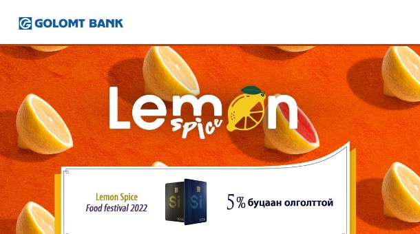 Монгол үндэсний болон олон улсын хоолны соёлыг нийтэд түгээх, танин мэдэхүйн мэдлэг олгох зорилготой “Lemon Spice” хамгийн том хоолны фестиваль яг одоо Үндэсний соёл амралтын хүрээлэнд зохион байгуулагдаж байна. Дэлхийн улс орнуудын хоолыг нэг дороос амтлах боломжийг олгож буй “Lemon Spice” фестивальд Голомт банк ерөнхий ивээн тэтгэгчээр ажиллаж буй юм.