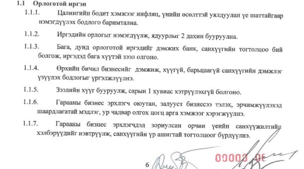 1.1.1 Цалингийн бодит хэмжээг инфляц, үнийн өсөлттэй уялдуулан үе шаттайгаар нэмэгдүүлэх бодлого баримтална.