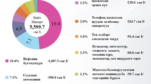 МОНГОЛ УЛС 2022 онд 5 ТЭРБУМ 599.7 САЯ АМ.ДОЛЛАРЫН БАРАА ИМПОРТООР АВЧЭЭ