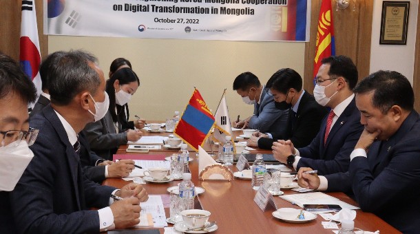 Улсын Их Хурлын дарга Г.Занданшатарын Бүгд Найрамдах Солонгос Улсад хийж буй ажлын айлчлалын хүрээнд өнөөдөр /2022.10.27/ Улсын Их Хурлын гишүүн, Улсын Их Хурлын Инновац, цахим бодлогын байнгын хорооны дарга Э.Батшугар Улсын Их Хурлын гишүүн Б.Пүрэвдорж нар тус улсын Шинжлэх ухаан, мэдээллийн технологийн яамны дэд сайд Жүн Ен Чантай уулзлаа.