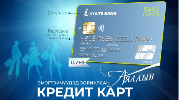 “SAVE GREEN” нь төгрөг болон юанийн сонголттой, дотоодын болон олон улсын төлбөр тооцоонд ашиглах боломжтой, EMV чип, зайнаас унших PayWave технологи бүхий кредит карт юм. Уг картыг хэрэглэснээр ЮнионПэй байгууллагын “Travel Mate.Asia” хөтөлбөрт хамрагдан Ази тивийн 20 орны аяллын эх сурвалжийг онцгой эрхтэйгээр авч, үзвэр үйлчилгээ, автомашин түрээс, зочид буудал, зоогийн газар, дэлгүүрүүдэд хөнгөлттэй үнээр үйлчлүүлэх зэрэг давуу талтай юм байна.