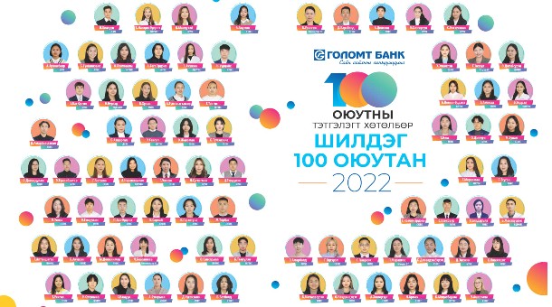 Боловсролыг дэмжигч Голомт банкнаас жил бүр зохион байгуулдаг “Оюутны тэтгэлэгт хөтөлбөр-2022”-т шалгарсан шилдэг 100 оюутныг тодрууллаа. Нийт 13 их, дээд сургуулиас тодорсон шилдэг 100 оюутанд батламж болон мөнгөн тэтгэлэг гардуулах ёслолын ажиллагаа 11 дүгээр сарын 11-нд болсон юм.