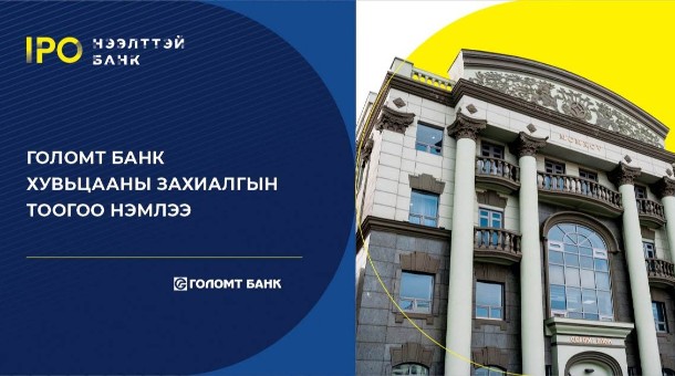 ГОЛОМТ БАНК ХУВЬЦААНЫ ЗАХИАЛГЫН ТООГОО НЭМЭХЭЭР БОЛЛОО