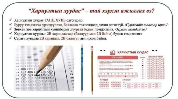 БҮТ: Үнэлгээний хариултын хуудсыг будаж бөглөх харандааг заавал В2 гэж заагаагүй