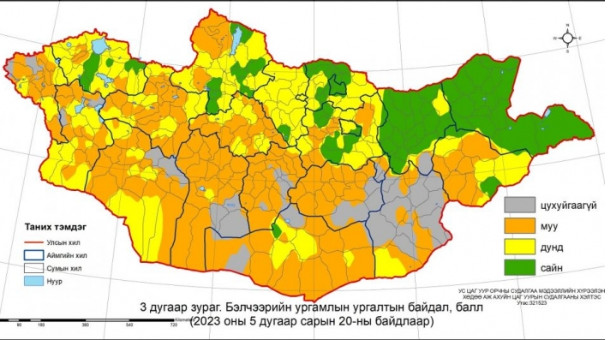 Цаг уурын байгууллагын ирүүлсэн мэдээгээр бэлчээрийн ургамлын ургалтын байдал 5 дугаар сарын 20-ны байдлаар нийт нутгийн 10 орчим хувьд цухуйгаагүй.