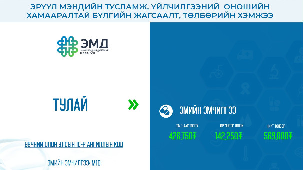 Тулай өвчний хэвтүүлэн эмчлэх тусламж, үйлчилгээний 75 хувийг ЭМД-ын сангаас хөнгөлнө.