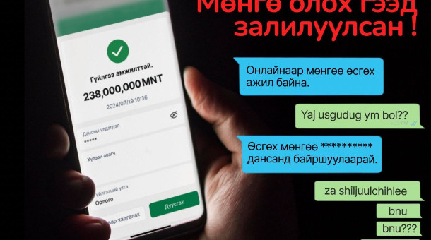 Телеграм орчинд иргэн А гэмт этгээд рүү ₮238 саяыг шилжүүлэн, их хэмжээний мөнгөөр залилуулжээ