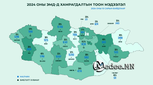 ЭМДЕГ-аас 2024 онд шимтгэлээ өөрөө хариуцан төлөх 140,570 мянга гаруй малчин иргэдийг ЭМД-д бүрэн хамруудахаар төлөвлөсөн. Гэвч 2024 оны эхний 10 сарын байдлаар 48.446 малчин буюу 34 хувь нь ЭМД-д хамрагджээ