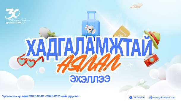 “Хадгаламжтай аялал” урамшуулалт аян нь 2025.05.01-2025.12.31-нийг дуустал үргэлжлэх бөгөөд азтануудыг Golomt Bank фэйсбүүк хуудсаар тухай бүр шууд дамжуулантодруулна.