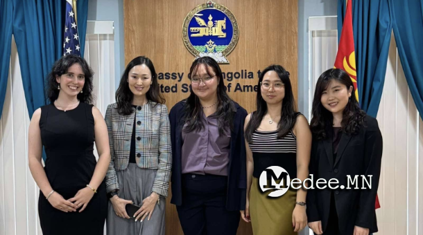 Монгол Улсаас АНУ-д суугаа Онц бөгөөд Бүрэн эрхт Элчин сайд Ө.Батбаяр MUNCEP-2025 хөтөлбөрийн оролцогчоор шалгарсан А.Одонтуяа, Г.Тэргэл, Ж.Саруул-Эрдэнэ нарыг энэ сарын 4-нд ЭСЯ-нд хүлээн авч уулзан, баяр хүргэжээ.