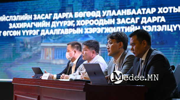 Бид дөрөвдүгээр сарын эхээр анхны уулзалтаа хийж, эхний ээлжийн үүрэг даалгавруудыг өгч, тодорхой санхүүгийн эх үүсвэрүүдийг шийдсэн. Эдгээр ажлын үр дүнг хэлэлцэж, мөн дутуу ажлуудаа гүйцээх асуудлыг өнөөдөр хэлэлцлээ. Улаанбаатар хотод 204 хороо болон есөн дүүргийн Засаг дарга, нийслэлийн Засаг дарга нийлээд бүх тулгамдсан асуудлаа харилцан уялдаатай шийддэг, харилцан хяналт тавьдаг менежмент рүү орж байна.