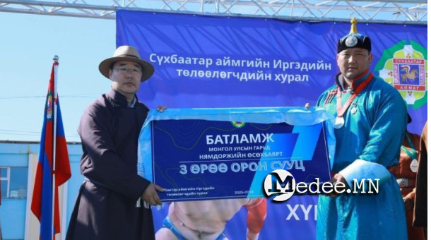 Сүхбаатар аймгийн Засаг дарга М.Идэрбат нутгийн ард иргэд болон бөхөд хайртай монгол түмнээ баясган цэнгүүлж, уран барилдаан үзүүлж, аймагтаа анхны гарди цол авчирсан түүнд нутгийн иргэдийн сэтгэл шингэсэн гурван өрөө байрны батламжийг гардуулсан байна.