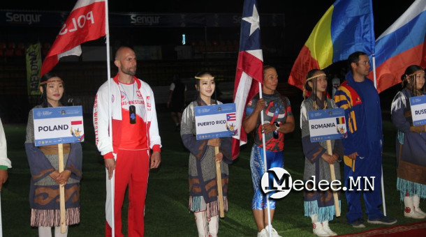 Нээлтийн үеэр 45 шүүгчээс бүрдсэн олон улсын бүрэлдэхүүн, дэлхийн өнцөг булан бүрээс ирсэн тамирчид, багийн дасгалжуулагчид, албаны хүмүүс парадын жигүүрийг бүрдүүлж, Монголын баг хамгийн сүүлд зохион байгуулагч орноор орж ирсэн.