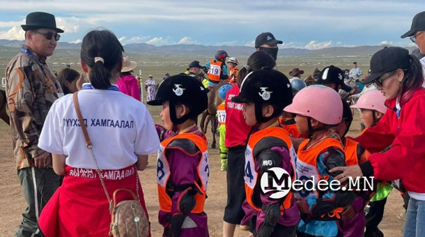 - Эрлийз бага нас 222 бүртгэгдсэнээс 108 морь уралдаж, 4 хүүхэд мориноосоо унасан. 1 хүүхэд хүндэвтэр гэмтэл авч, анхан шатны тусламж үзүүлэн эмнэлгийн шатанд шилжүүлжээ.