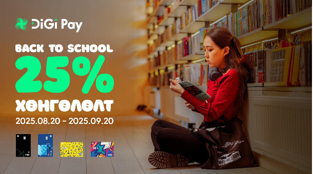 Харин чанартай бичгийн хэрэгсэл сонгохоор Pilot Pen Mongolia, Аз хур номын дэлгүүр-ээр үйлчлүүлэхдээ ч мөн адил Digi Pay аппликэйшнд холбосон К карт, Багш карт болон биет TEEN картаа ХААН Банкны ПОС төхөөрөмжид уншуулаад л 25 хувийн хөнгөлөлт эдлэх боломжтой. Энэхүү урамшуулалт аян 2025 оны 8-р сарын 20-ноос 9-р сарын 20-ны хооронд үргэлжилнэ. Аяны хугацаанд нэг харилцагчийн эдлэх хөнгөлөлтийн дээд дүн: 150,000₮