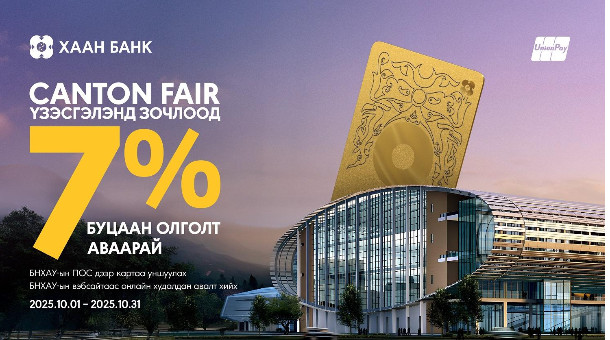 Жишээ нь, та 2025 оны аравдугаар сарын 1-31-ний хооронд “Canton Fair-2025” үзэсгэлэн худалдааны үеэр картаа уншуулан нийт 1,000,000 төгрөгийн худалдан авалт хийсэн бол 2025 оны арваннэгдүгээр сарын 12-ны өдөр таны картын данс руу 70,000 төгрөгийн буцаан олголт шилжин орох болно.