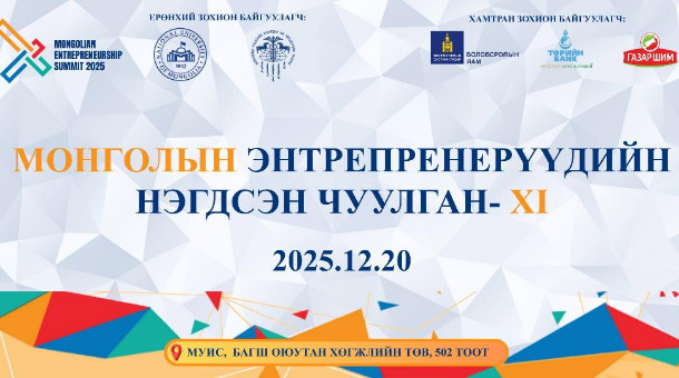 МУИС-ийн Бизнесийн сургуулийн харьяа Бизнес консалтинг төв, Монголын үндэсний худалдаа аж үйлдвэрийн танхим хамтран “Монголын энтрепренерүүдийн нэгдсэн чуулган – 2025” арга хэмжээг энэ сарын 20-ны өдөр МУИС-ийн Багш, оюутны хөгжлийн төвд зохион байгуулах гэж байна.
