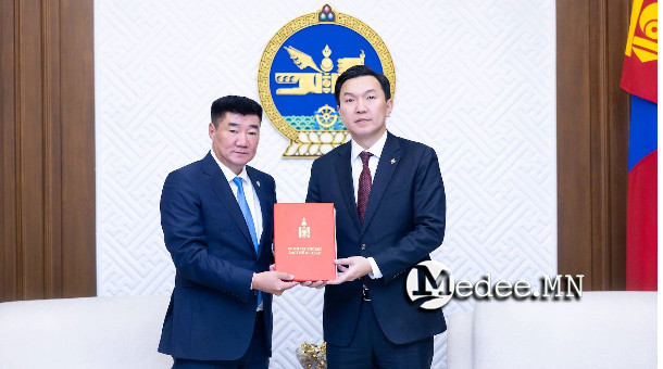 Монгол Улсын Их Хурлын дарга Н.Учралд (2025.12.18) Монгол Улсын сайд, Засгийн газрын хэрэг эрхлэх газрын дарга С.Бямбацогт Төрийн өмчит хуулийн этгээдийн хувьцааг 2026-2028 онд биржээр олон нийтэд нээлттэй худалдах, төрийн өмчийг хувьчлах, өөрчлөн байгуулах үндсэн чиглэл батлах тухай Улсын Их Хурлын тогтоолын төслийг өргөн мэдүүлэв.