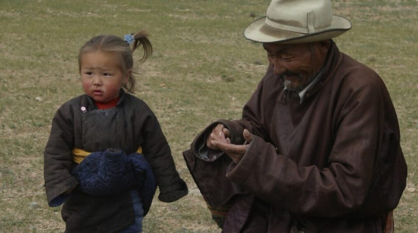 Ач хүү, өвөө хоёр ярилцаж байна.
