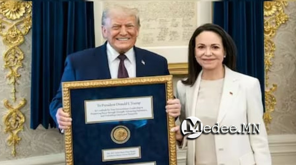 Fox News суваг Венесуэлийн сөрөг хүчний идэвхтэн Мария Корина Мачадо өөрийн хүртсэн Нобелийн Энхтайвны шагналыг АНУ-ын Ерөнхийлөгч Дональд Трампад өгсөн тухай мэдээллээ.