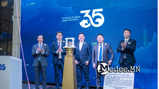 Монгол Улсад үнэт цаасны зах зээл үүсэж, “Монголын хөрөнгийн бирж” ХК байгуулагдсаны түүхт 35 жилийн ойн хүндэтгэлийн арга хэмжээ, арилжааг нээх цан цохих ёслол МХБ-ийн “MSE hall”-д зохион байгуулагдлаа.